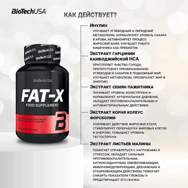 FAT-X — отличный выбор для тех, кто стремится снижать вес без возбуждения, стресса или бессонницы. Его формула работает мягко: помогает в контроле желаний, поддерживает энергию и ускоряет липидный обмен.