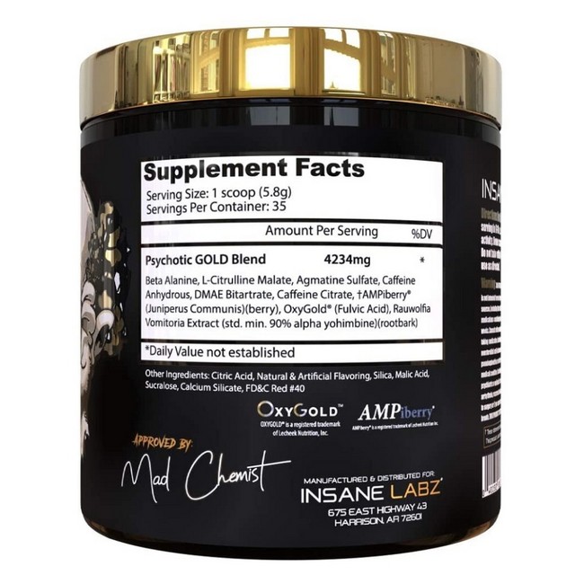 Psychotic Gold создан для опытных спортсменов, которым нужна высокая стимуляция, фокус и производительность. Благодаря сочетанию цитруллина, агматина и уникальных запатентованных компонентов обеспечивает не только прилив энергии, но и сильный памп.