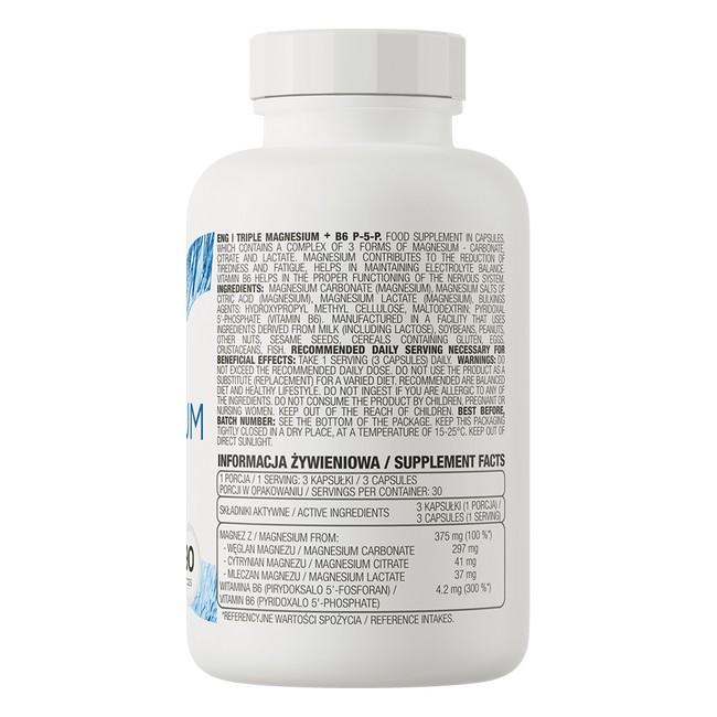 Магний участвует в сотнях биохимических процессов, влияет на работу нервной системы, мышц и энергетический обмен. Тройная формула магния обеспечивает хорошее усвоение, а активная форма витамина B6 (P-5-P) повышает биодоступность и эффективность комплекса.